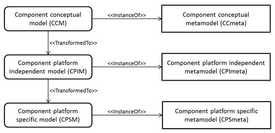 - Kainz, G.; Buckl, C.; Sommer, S.; Knoll, A. Model-to-Metamodel Transformation for the Development of Component-Based Systems. In Model Driven Engineering Languages and Systems; Petriu, D.C., Rouquette, N., Haugen, Ø., Eds.; Springer: Berlin/Heidelberg, Germany, 2010; pp. 391–405. [Google Scholar]