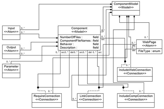Kathayat et al. [34] present a service-oriented development approach leading to reusable components derived from service models. The study discusses different kinds of reusable components as collaborations to provide services, partially supporting components, and components for system compositions. Herrero Agustin and Del Barco [35] propose a framework for model-driven web application development by composing heterogeneous web components. They propose a UML profile for web development and present a transformation model to generate web applications from the design models. Mizuno et al. [36] propose an approach that applies component-based development technologies that have mainly been developed at the software implementation level to the modeling level. They investigate a method of loosely coupling model elements by applying the component concept to model-based development.