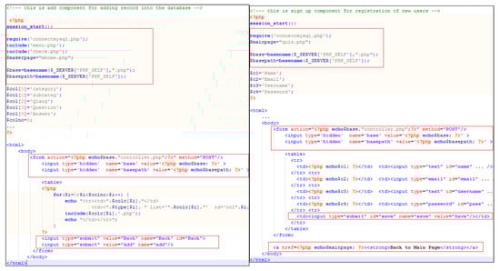 Some components are used more than once in the system, such as view component, which was used in the view questions function and the view users function. As an example, Figure 11 shows the parameters file for the view users function while Figure 12 shows the parameters file for view questions function. Both of them are using the same component, which is view records, but by modifying the parameters file, we can use it for different tasks. Finally, to implement the system, we combine the code of reusable and non-reusable components to construct the final system and test it.