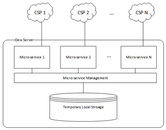 The dew server connects to each cloud storage via micro-service. Each micro-service connects to each cloud storage, as shown in Section 4.3.1. The micro-service is a pluggable software that can install or remove from the dew server.
