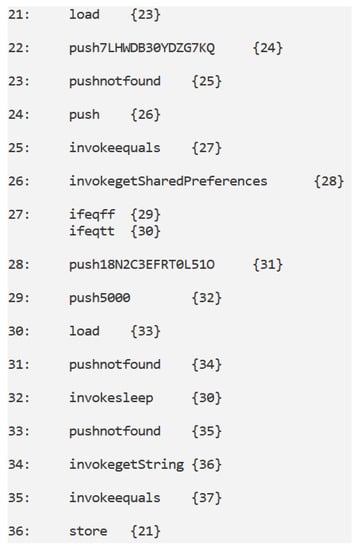 - Canfora, G.; De Lorenzo, A.; Medvet, E.; Mercaldo, F.; Visaggio, C.A. Effectiveness of opcode ngrams for detection of multi family android malware. In Proceedings of the 2015 10th International Conference on Availability, Reliability and Security, Toulouse, France, 24–27 August 2015; pp. 333–340. [Google Scholar]