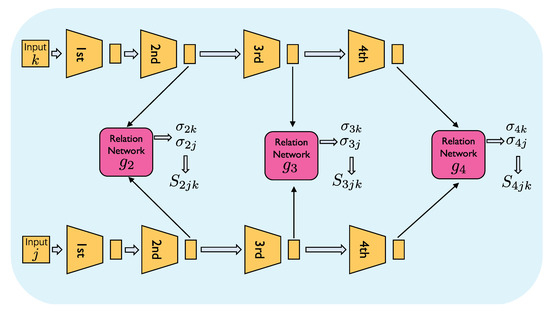 The overall architecture of the relation network module, which computes and , is similar to the architecture used by Liu et al. [23]. Each relation network module consists of two convolutional blocks, followed by two fully-connected layers. Each convolutional block is composed of a 3 × 3 convolutional layer with a stride of 1, a batch normalization layer, ReLU activation, and a 2 × 2 max-pooling layer with a stride of 1.