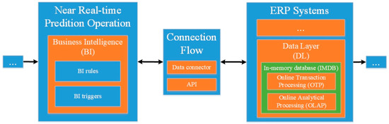 ERP systems managers that are also decision support system holder for successful decision-making in AODPF there is a need for integration between AODPF and ERP systems. As well, the framework must be able to provide forecasts regularly and with high-speed accuracy and connectivity. This can very well be provided by business intelligence (BI), which sets rules and specific triggers. At a particular time, one precise data source observation would give off a specific trigger of an event that would be able to provide ERP systems decision-making an additional criterion. Such triggers could be configured as many as needed so that the BI provides all the desires and needs. In order to connect AODPF to ERP systems, there is a need for a data connector. Which nowadays is mostly done with the help of APIs. AODPF has the following API available and can be tested by setting up AODPF and trying out all the instructions available on GitHub, which is listed next to Supplementary Materials. The AODPF connection between ERP systems can be seen in Figure 3 below.