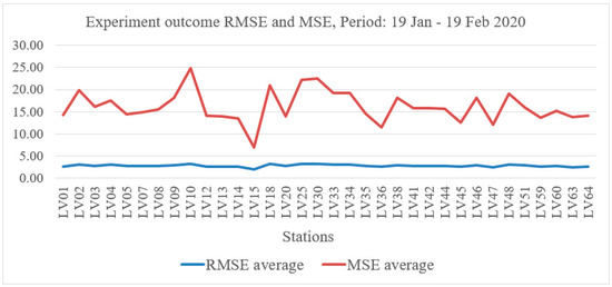 Experiment outcome RMSE and MSE, period: 19 January 2020—19 February 2020.