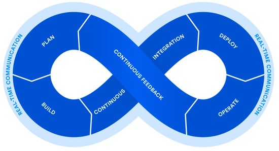 - Lwakatare, L.E.; Kuvaja, P.; Oivo, M. Relationship of DevOps to Agile, Lean and Continuous Deployment. In Product-Focused Software Process Improvement, Proceedings of the 17th International Conference, PROFES 2016, Trondheim, Norway, 22–24 November 2016; Springer: Cham, Switzerland, 2016; Volume 10027, pp. 399–415. [Google Scholar]