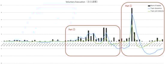 Analysis of crisis-related Twitter data is an important research topic, and several researchers have actively investigated it [11,12,13,14]. Some researchers analyzed Twitter data related to the Fukushima Daiichi nuclear disaster; this disaster is one of the most significant recent events in which social media was actively used for information dissemination. The existing approaches can be approximately divided into two categories. The first category is focused on the interactions of users, e.g., direct communication and information sharing at the time of the disaster. For example, Toriumi et al. analyzed the tweets that were posted before and after the accident, to unravel how people share disaster-related information on Twitter. These researchers studied replies and retweets based on whether interactions occurred in the network of the users’ followers [4]. They concluded that social media users changed their behavior to widely disseminate important information, and shared fewer non-emergency tweets to avoid interfering with critical disaster-related information. Sakaki et al. analyzed user interactions with regional information [15]. They concluded that the users diffused substantially more information after the earthquake, particularly in the heavily damaged areas; the users communicated with nearby users but diffused information posted by distant users.