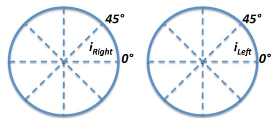 In previous experiments, we considered the whole iris area and different numbers of neighbors and components of the color space as features to design the statistical classifier. In addition, some structures can be expected to be present in iris images (e.g., spots or patches), which could modify the color structure and affect the performance of the SVC in this setting. We conducted an experiment for the analysis of the iris by taking the pixels in 45 sectors, as depicted in Figure 7. The features used for this purpose were components of the previously analyzed RGB-Lab space.