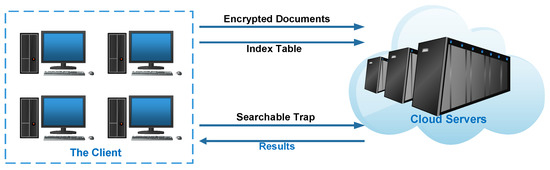 As illustrated in Figure 1, the system model includes two main entities: the Cloud Servers (CS) and the Client User (CU). With sufficient computation and storage resources, CS provides users or organizations with management and maintenance of massive data, storage services, quick access, and complex computing services to obtain commercial benefits. CU uses these services provided by CS. Generally, for data privacy and security, CU prefers data being outsourced to CS in ED, i.e., data should be encrypted first. To search the interested data, CU submits the corresponding keyword trapdoor to CS. Then CS returns the corresponding document data.