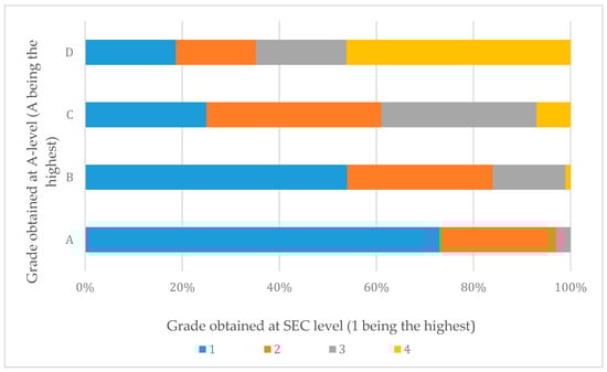 Student grades confirmed that those students who obtain better grades at SEC level tend to perform better at AM Physics, as indicated in Figure 1.