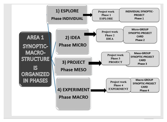 The project work, structurally ordered and organized in a deconstructivist perspective [74], follows interaction procedures for increasing levels of complexity, is considered in sequence (times and spaces) between the persons, equipment, materials and information present in a system, carefully thought “to attribute the right importance to the human factor” [75] (p. 30). Retracing what the International Organization for Standardization reaffirmed in ISO 6385: 2016 [76] regarding the principles of ergonomics as basic guidelines for the design of work systems, flipped inclusion follows a cooperative approach throughout the exploration, idea, project and experimentation process with attention to human, social and technical requirements in a balanced way.