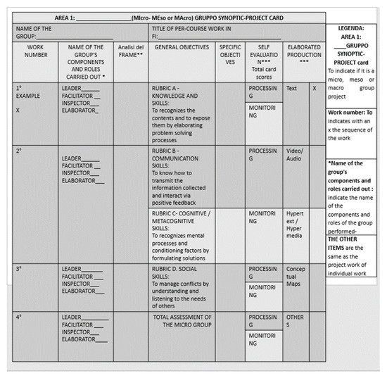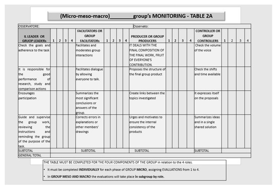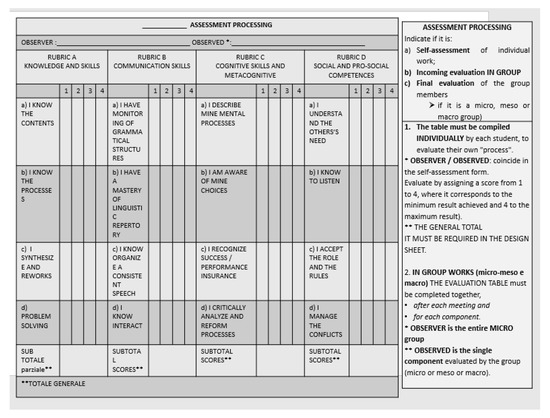 In order to manage the complexity of the intervening variables in progress and to rebalance the processes through systematic and non-extemporaneous feedback, Flipped Inclusion consists of a constant evaluation and self-evaluation control in the pre (monitoring)–post (processing) carrying out of the micro-months -ex and inclusive macro contextualized designs, with ergonomic cards organized according to standard evaluation rubrics by role, objective (communication/cognitive skills and knowledge/cognitive/social and prosocial goals) and phases [52]. Links have been prepared for monitoring, self-assessment and evaluation, initially and finally online, by stages and levels (Figure 4, Figure 5, Figure 6, Figure 7 and Figure 8).