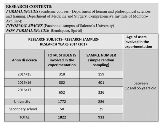 The research project took into account a review of the literature, which addressed the exploratory investigation, concerning the role of cross-media technologies and the incidents on the socio–political–economic macro-structure and educational psycho-anthropic [48,49].
