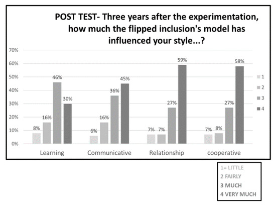 With the experimental research–action paths, therefore, the effects of the flipped inclusion model were studied; these made use of cross-media tools in the classroom and beyond the class it was experimented through research–action paths, verifying