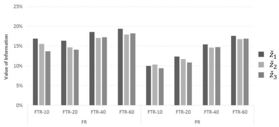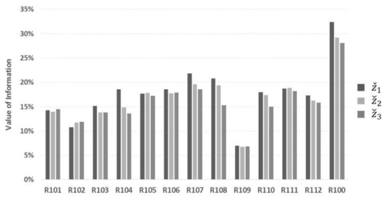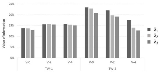 Figure 6 presents the performance (with respect to VoI of Section 5.1.2) of each objective for each investigated instance of the R1 dataset (incl. R100), averaged over all test problems and re-optimization policies and tactics. As before, lower values of VoI correspond to better performance. According to the figure, objectives and (which consider vehicle productivity) seem to provide more efficient solutions for cases with increasing TW width, compared to objective ; this improvement is more pronounced in cases with wide TW (R103, R104, R107, R108) or no time windows (R100).