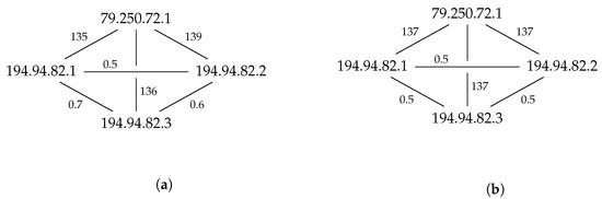 (a) Measured latency; (b) Latency approximated by ultrametric.