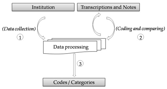 The freedom each interviewee had to talk about the importance of the use of IT required an in-depth analysis of collected data. This work adopts a bottom-up analysis procedure with similar mechanisms to the Grounded Theory [37,38] to facilitate the primary data analysis. However, the study did not fully apply the Grounded Theory protocol. The study developed only methodical gathering and analysis of data but did not build theories. The analysis initiates by studying the transcription of the interviews. The aim is to create a coding system with the perspectives related to the use of IT in the organization. Before assigning a code to a given sentence is necessary to evaluate its similarities and differences concerning other codes [39]. Figure 2 illustrates the coding and categorization process.