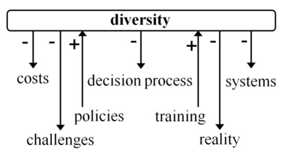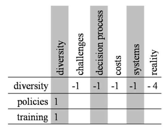 In order to offer a clear view of the interference network presented in Table 2, Figure 5 and Figure 6 present the example of the diversity perspective, demonstrating how it affects or is affected by other perspectives.