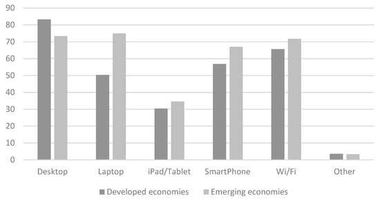 - Poushter, J. Smartphone Ownership and Internet Usage Continues to Climb in Emerging Economies; Pew Research Center: Washington, DC, USA, 2016; ISBN 9788578110796. [Google Scholar]