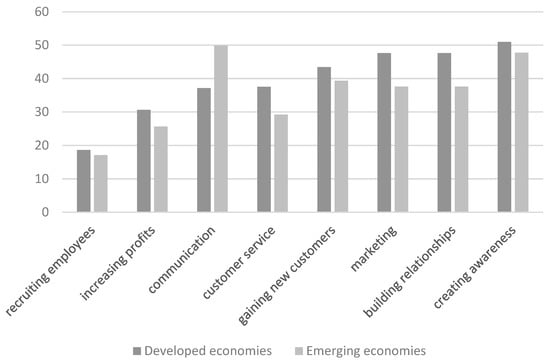 - RQ2: Is there a difference in social media usage in business by women from emerging versus developed economies?