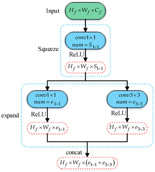 To effectively extract the deep feature representation of the mouth, we have made certain improvements to the Squeezenet network in [29], adjusting the input of the network to a 128 × 128 pixel image, and reducing the number of Fire module blocks. The framework of the Fire module is shown in Figure 2. We named the improved network Squeezenet-mouth network to identify the driver’s mouth state effectively. Figure 3 shows the structure of our proposed mouth state detection model.