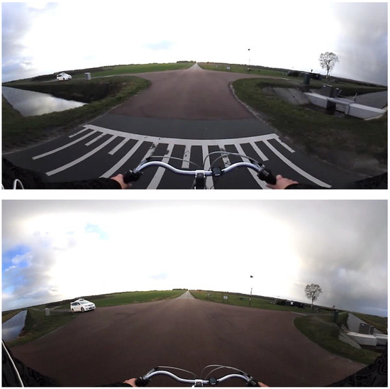 - Lubeck, A.J.A.; Bos, J.E.; Stins, J.F. Motion in images is essential to cause motion sickness symptoms, but not to increase postural sway. Displays 2015, 38, 55–61. [Google Scholar] [CrossRef]