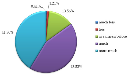 Participants were asked to compare the time they used the Internet before the COVID-19 pandemic and during the pandemic, and 84.8% stated that they used the Internet more and much more than before the lock-down (Figure 1).