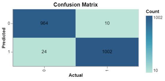 These results led to an almost perfect confusion matrix, displayed in Figure 3, where it is worth noting that the model tends to misclassify more objective pieces of text as subjective (24) than the other way around (10). The variation of true positives (subjective) and true negatives (objective) during training is displayed in Figure 4. The best equilibrium was accomplished around the 80th step (learning rate update), meaning around the eighth training epoch.