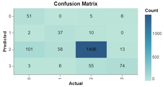 The results we obtained for stance detection are included in Table 5. Apart from selected fine-tuned transformer-based models, we include the most efficient deep-learning models that have been submitted for the SemEval 2019 Subtask 7A challenge. In this task, the best results (in terms of the Macro-averaged F1-score) were achieved by the RoBERTa model. This is probably due to the fact the dataset has a lot of slang words (e.g., LOL) and phrases, and RoBERTa contains a larger corpus (around 50,000 tokens) and has been pretrained on Twitter/Reddit posts [29]. RoBERTa achieved a 0.6301 F1-score, which is state of the art but is not that high. On the other hand, upon having a look at the confusion matrix (Figure 5), it is observable that the model misclassified only two Support comments as Deny and none vice versa; thus, there were not many “extreme” misclassifications; most of the misclassifications were due to the fact that the dataset is highly imbalanced, and a lot of the posts are classified as Comment.