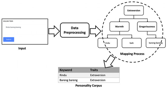 Hence, the idea to use user-generated data is logical since this approach is less obstructive than the legacy methodology of extracting personality traits. With the availability of a large volume of user-generated content through social media, we have the opportunity to turn that digital trace into user character descriptions. Some research uses machine learning to measure personality traits from social media automatically; for example, in earlier research, machine learning was used to analyze large-scale Twitter data with exceptional accuracy [13,14]. The use of machine learning provides advantages in terms of analysis time and various algorithms that can help measure extensive data [15]. Machine learning can analyze large amounts of data with the prediction algorithm to recognize personality in various data forms such as textual, speech, and graphics [16]. On the other hand, machine learning relies heavily on statistical computation; it has some weaknesses with the inability to understand the meaning and intention of some phrases and words. This weakness resulting from a machine learning method has difficulty acquiring common sense [17,18,19].