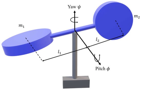 The 2-DOF helicopter is a dynamic system that consists of two motors, the first or lift is considered as the actuator one and causes the pitching movement, and a tail motor or actuator two, which produces the yaw movement; both direct current motors are driven with a nominal voltage of 12 volts. The platform dimensions are shown in Appendix A. For more system specifications and their components, as well as the system setup, see [20,21].