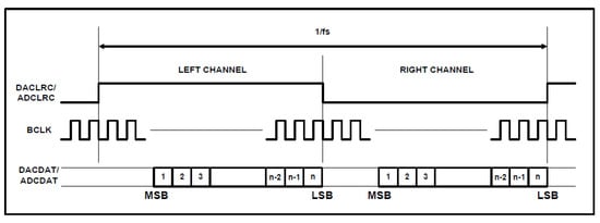 - Zhong, W.; Wang, Y. Interfaces design of dual-channel audio codec based on FPGA. Int. J. Adv. Comput. Technol. 2011, 3, 460–466. [Google Scholar] [CrossRef]