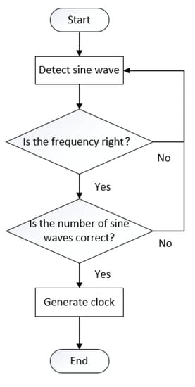 When encrypting the voice signal, a certain degree of clock synchronization is required. Because the encryption needs to divide the signal into frames in the time domain, it is necessary to synchronize the clock to determine the starting position of the frame when decrypting. Compared with the clock of digital communication in general, the clock of this product does not need very strict alignment. When performing voice collection, several adjacent points will all have the same magnitude of sound amplitude, and the collected data are almost the same. Therefore, even if the clock is identified with a certain error, it will not affect the decryption of the product. During the actual testing of this product, the clock difference generally did not exceed 10 sampling points, which is about 10/≈0.2 ms, and so does not affect the encryption and decryption at all. Thus, in the product design process we can simply design the synchronous clock of the product [17].