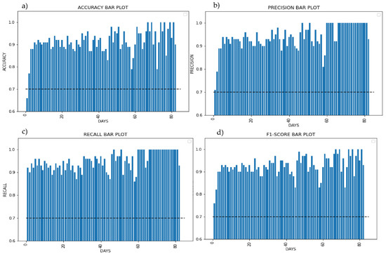 Different methods have been reported to validate the models, including direct correlation, Cohens Kappa, and Accuracy [71], but accuracy is not recommended for evaluating the model because it depends on the base rates of different classes [72]. It is important to calculate the missed calculations to measure the sensitivity of the classifier using recall. Moreover, for the evaluation of a prediction model, a combined method, such as F1-score, which considers both true and false classification results based on precision and recall, is the better metric. We also performed the model validation using these four metrics [73].