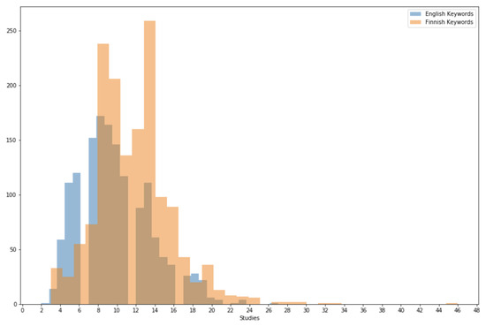 Keyword Frequency Distribution for the English and Finnish studies’ metadata.