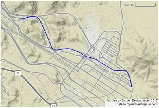 The available literature in this field has revealed the dependency of researchers on several sources in collecting spatial-temporal data like embedded GPS devices in buses, vehicles, smartphones, etc., for monitoring, designing, and controlling bus transportation. Relying on the buses’ GPS data, ref. [3] developed a college bus tracking android application. ref. [4] designed a bus schedule by partitioning bus operating hours into intervals with selected bus dwell time and inter-stop travel time based on the passenger demand and network traffic state. Refs. [5,6] introduced systems that predict and display to passengers at-stop bus travel time. Ref. [7] predicted arrival time at-stop and ref. [8] to next stop at signalized intersection. Ref. [9] visualized and identified congestion hot spots in roadways. Ref. [10] applied machine learning to explore trip fuel consumption. Refs. [11,12] estimated and assessed traffic speeds on a roadway. Other GPS data like taxi GPS traces in ref. [13], and ref. [14], and bus passengers’ smartphone GPS data in [15] were used to plan bus routing and predict bus arrival time at various bus stops, respectively. Ref. [16] proposed a recommender system to recommend the best route for university shuttle bus service using Artificial Neural Network and Support Vector Machine. The path from source and destination is a combination of multiple sections or roads, and to find the ideal time of overall journey, authors [17] used a genetic algorithm to find the optimum average time of each section of the road separately. These applications are just to name a few, and the literature is full of other relevant studies.