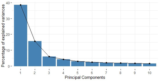 Percentage of variables explained by each principal component.