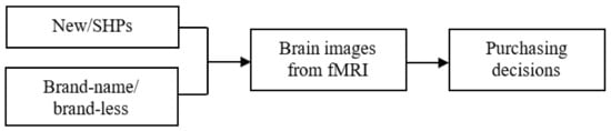 Predicting consumer behaviors can be easily achieved by investigating their brain’s neurons with the use of fMRI. This method has been adopted by more and more studies in the literature [14,22,23,24,25]. Prior studies have reported consistent results: The activation of nucleus accumbens (NAcc) correlates to consumers’ product preferences, but such activation is found in risky or disadvantageous situations [26]. The medial prefrontal cortex (MPFC) is also activated due to the product’s price differential. Additionally, greater activity in the insula may occur if the situation is associated with non-purchases due to a loss prediction or risk aversion. Overall, the BOLD signal in NAcc, MPFC, and insula are strongly predictive of the decision to purchase [6]. In addition, prior brain imaging studies have found a significant impact of brands on purchasing decisions [20,27]. Specifically, the VMPFC, hippocampus, DLPFC, and midbrain can predict preferences for brand-name products [20]. Purchasing decisions are consumers’ activities when obtaining, consuming, and disposing of products and services [28].