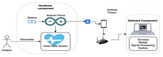 There are some online ECG databases available like ECGVIEW [27] and physionet [28] which provide ECGs for different research purposes. The ECG databases for people falling could not be found so the ECG data was collected as part of the experiment. The data acquisition system consisted of two components: a hardware component which was obtained from [29] and a software component; for the system architecture we refer to Figure 1.