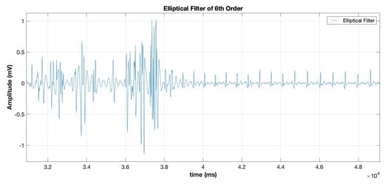 First of all, the minimum order of an elliptic filter which is required to meet a set of filter design specifications was determined and then same order was used to filter all the signals.