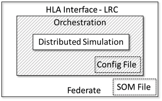 Defining a simulation scenario means centralizing the information that decides the order of execution of the different distributed simulations. The concept of “order of execution” introduces the notion of pending federates. The main objective is to connect the federates to a specific federation, execute them, and wait for their respective orders in order to launch their simulations appropriately. This diagram must therefore have priority over all the federates of a federation, and this is currently impossible in the HLA standard as described by the HLA specifications. Each federate is autonomous and can only be prioritized by the order of the messages exchanged. This is why a distributed HLA simulation orchestration has never been proposed before.