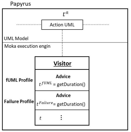 Each element of the UML diagram is linked to its associated visitor. Each visitor of the simulation can have none, one, or several associated advice(s). It is therefore possible to extend the Papyrus execution engine to add advices to the visitors, and thus add custom conditions/behaviors when executing a Papyrus model.