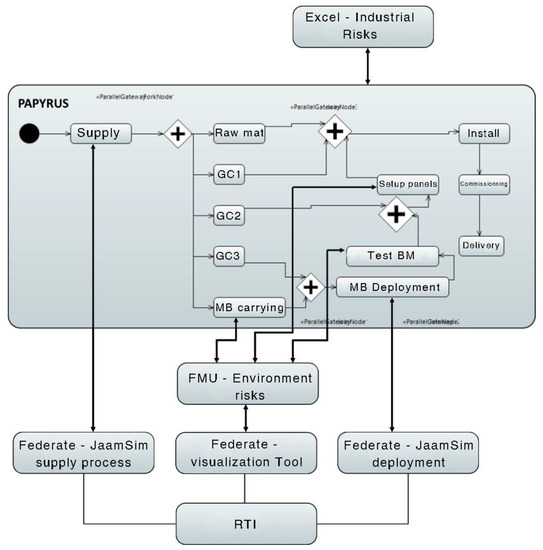 All these results are linked with 4.0 industry. Getting risk information from a global risk database is related to data-driven processes and big data. Opening the Papyrus tool to several distributed-simulation standards is a link with the concept of the internet of things. Orchestrating several distributed simulations can be associated to smart manufacturing and digital twins.