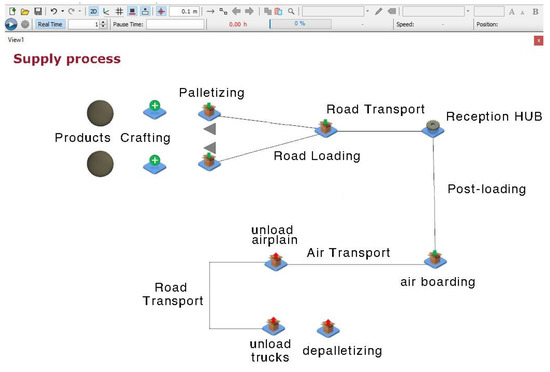 In the context of Industry 4.0, the need for modeling and simulation (M&S) becomes more and more important as it allows users to manipulate virtual prototypes to easily reproduce experiments in different situations while working on accessible virtual models [5]. This approach to modeling and simulation relates to the four pillars of Industry 4.0: (1) Digitization: the interconnection of systems and the management of large amounts of data allow the enrichment of a model’s input data; (2) Flexibility: the simulation of an industrial process allows an efficient representation and analysis of its operations. This results in an increased ability to make decisions and adapt to its environment; (3) Logistic tools: An M&S tool can be connected to an information system as a decision support module; and (4) Human–machine interface: as in all operations involving human and machine resources, the need for efficiency and ease of use are necessary.