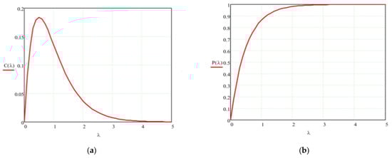Dependence of (a) the average number of packets C that is successfully transmitted and (b) the probability of losses from collisions P from the intensity λ.