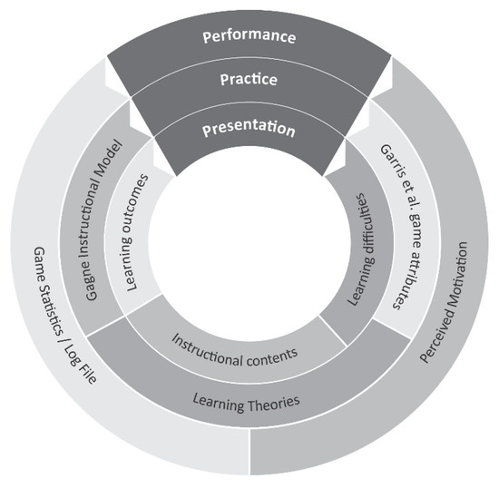 A model is needed to overcome students’ obstacles and follow the entire learning process in a fun and engaging way. Therefore, the development of models is influenced by learning theories, and linking game attributes to instructional design models. For the difficulties arise because of the lack of motivation, the motivational model is incorporated into the model’s design. Figure 2 shows an SG model based on the described components, i.e., instructional contents or learning difficulties, game attributes, learning theories, required competencies, and motivational aspects logically placed in the presentation, practice, and performance phases. The purpose of the placement of the components in these phases is presented in Table 1.