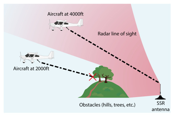 Most aircraft in the world are tracked by various Secondary Surveillance Radar (SSR) technologies, the most common being Automatic Dependent System-Broadcast (ADS-B) and Mode-S. SSR refers to the system which tracks aircraft via communication from the aircraft, meaning the tracking process is entirely reliant on the aircraft to provide their location, altitude, and more [1,2]. Primary Surveillance Radar (PSR) does not require the aircraft to provide aircraft information; instead, it derives its own information by transmitting radio waves and a timed response is made when the radio wave hits an aircraft [3]. SSRs can be at different sizes with different features and cost. For example, a MSSR M10SR atop a tower SSR [4] is larger than a Kinetic SBS-3 with a 1090 MHz antenna [5], they are both SSRs but with different abilities.