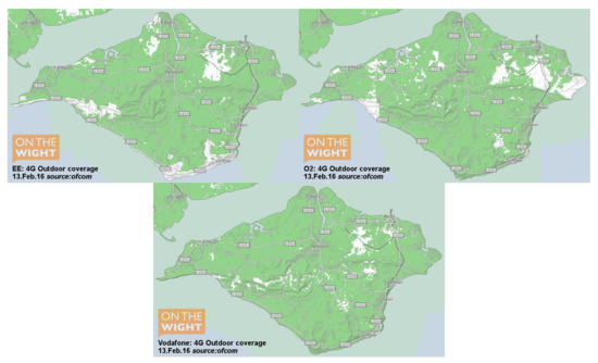 - 4G.co.uk. 4G Coverage on the Isle of Wight. 2016. Available online: https://www.4g.co.uk/news/the-isle-of-wight-now-has-strong-4g-coverage/ (accessed on 4 January 2021).