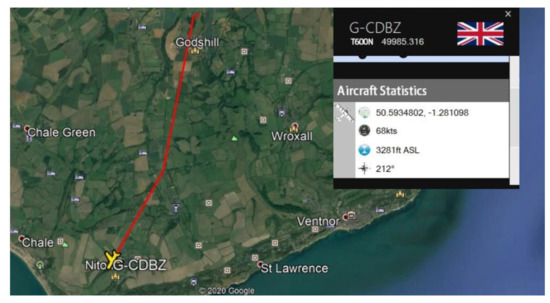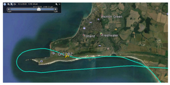 Second flight test was held on 11th April 2020. As the data could be successfully transmitted and played back with good results, the next test will need to be a side-by-side comparison between the transmission and the tracking. For the testing to be thorough the aircraft must be flown at varying altitudes and locations to see if this causes any issues during the transmission. Figure 19 and Figure 20 visualize the tracks for this flight. In Figure 20, overlaid is South Hampshire and Isle of Wight controlled airspace; a user can click on the zones to see the altitudes where this applies.