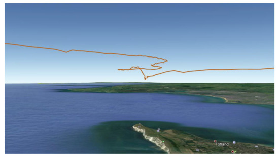 First flight test was held on 16th March 2020 to test the first version of the application. A solo flight lasting from 13:30 to 15:00 which would test the ability to transmit from the air and the accuracy of the tracks. The data was decoded by the prototype desktop application and visualized in Google Earth, as seen in Figure 18.