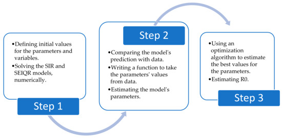 The manuscript is organized in several sections. Section 2 presents the research methodology. Section 3 and Section 4 introduce the SIR and susceptible, exposed, infected, quarantined, and recovered (SEIQR) models. Section 5 describes the prediction algorithms (the logistic function and Prophet algorithm). Section 6 provides the results, followed by a discussion and concluding remarks in Section 7.